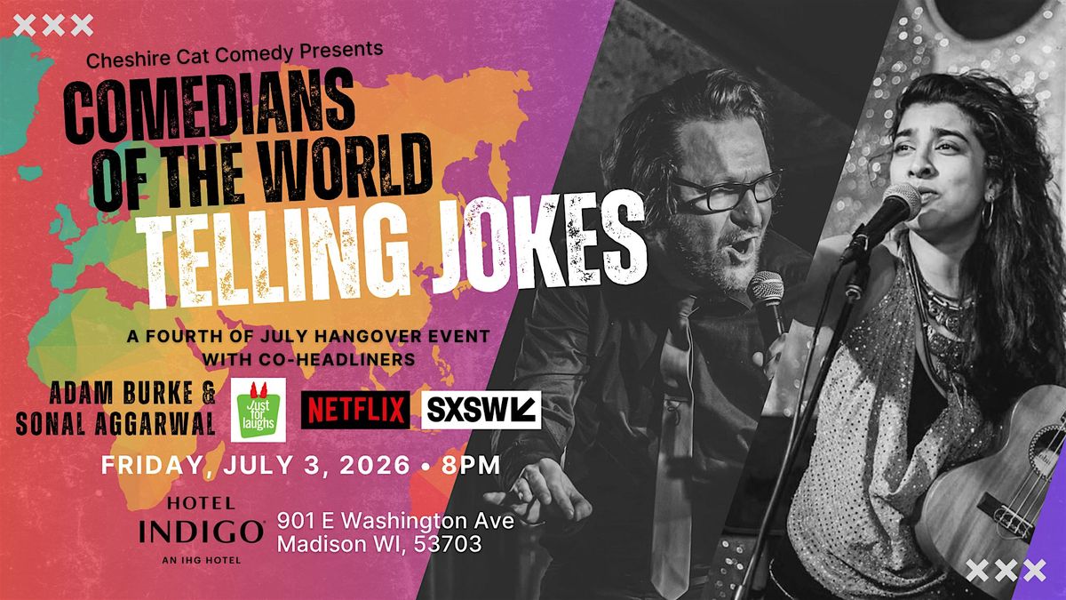 FRIDAY, JULY 3 — Best of Madison winner Cheshire Cat Comedy presents Comedians of the World Telling Jokes, a July 4th pregame event celebrating international voices in comedy at downtown Madison's Hotel Indigo, a former paint factory turned historic hotel.