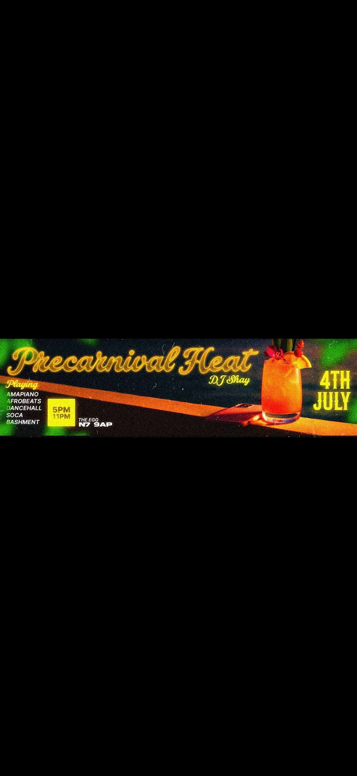 Get ready to turn up the heat at Precarnival Heat - The ultimate pre-carnival vibe! Join us on July 4th from 5PM-11PM at The Egg, N7 9AP.About this Event
