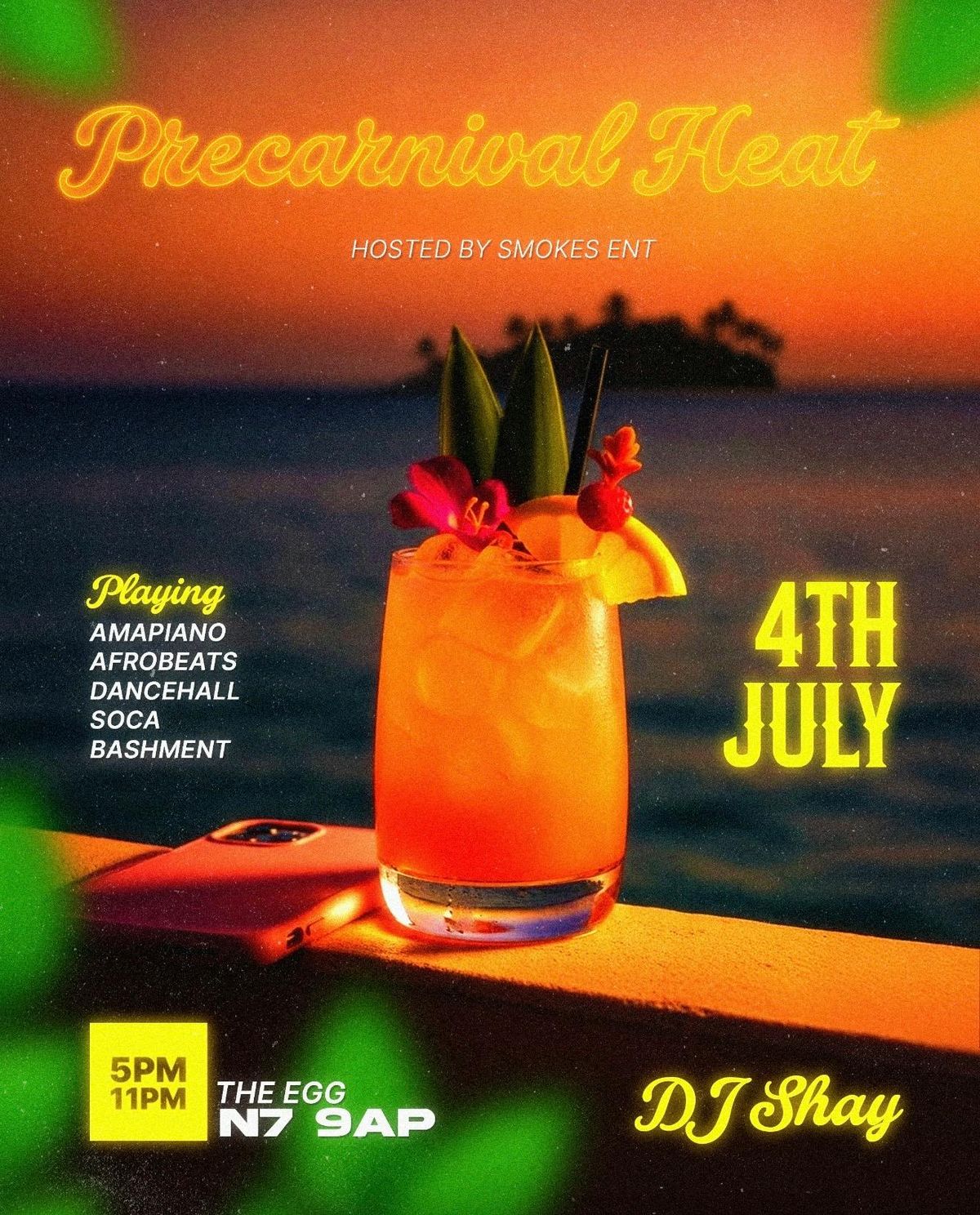 🔥Precarnival Heat is your official kickoff to carnival season—bringing together vibrant music, island-inspired energy, and a lively crowd ready to dance. Set against a sunset atmosphere, this event blends tropical aesthetics with high-energy sounds from across the diaspora. Whether you’re a fan of smooth Amapiano grooves or high-tempo Soca and Dancehall rhythms, the night is designed to keep you moving.🌴🍹Hosted by Smokes Ent